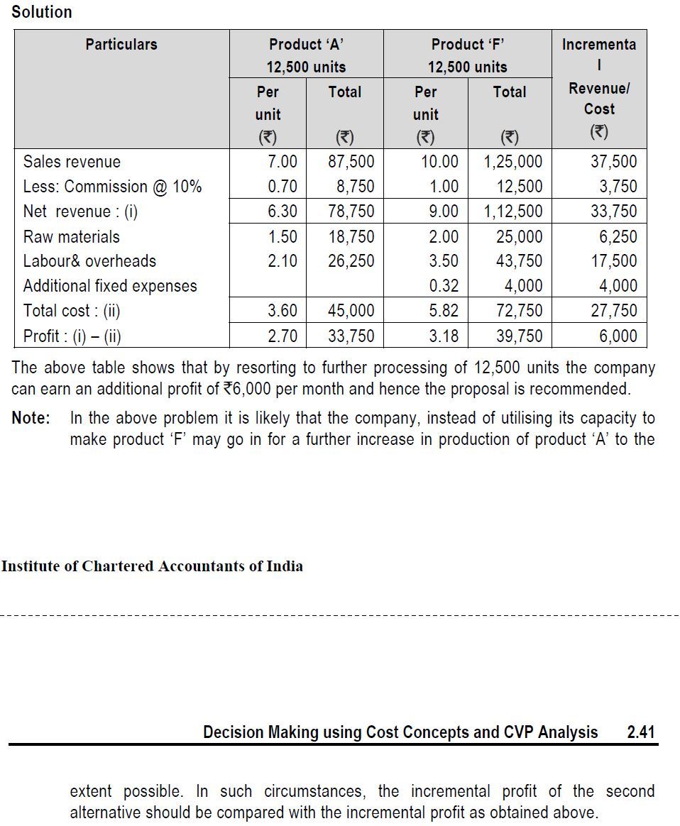 Incremental revenue from processing further