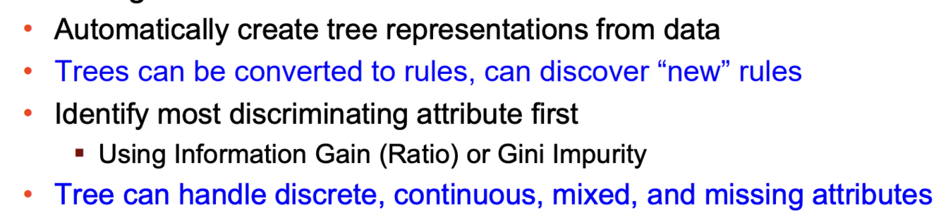 2. Decision trees are especially good at dealing with connected attributes / doing diagonal classification.