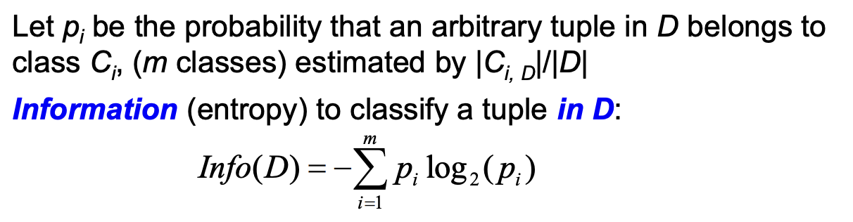 Wie bestimmt man die Information (entropy) to classify a tuple in D?