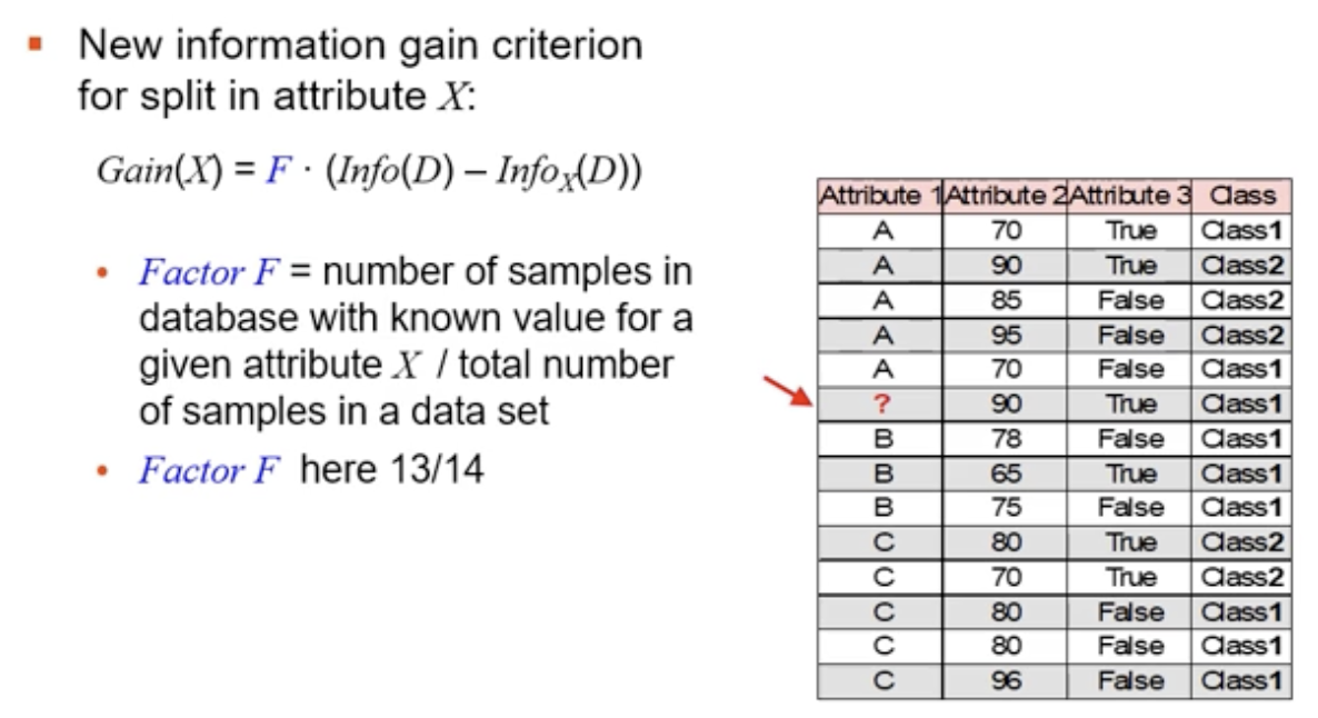 Wie würde das Gain Kriterium aussehen, wenn man fehlende Datan an einem Attribut hat?