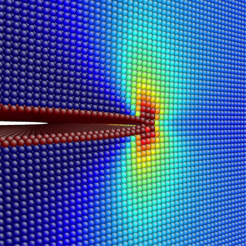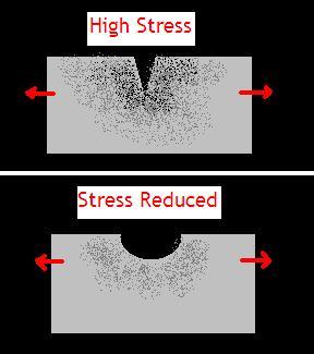 Draw a diagram to show what happens to a material with a crack which is under tensile stress.