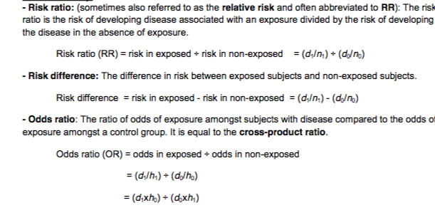 Intrepret quantitve measures of risk (risk ratio, odds ratio, relative and absolute risk)