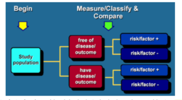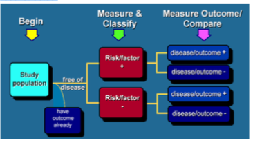 Healthy individuals are recruited, though some may already have the disease at baseline, and followed up for future disease occurrence, often for decades. Exposure is status is measured at baseline and repeat measures for change in exposure may be undertaken over the follow-up period
