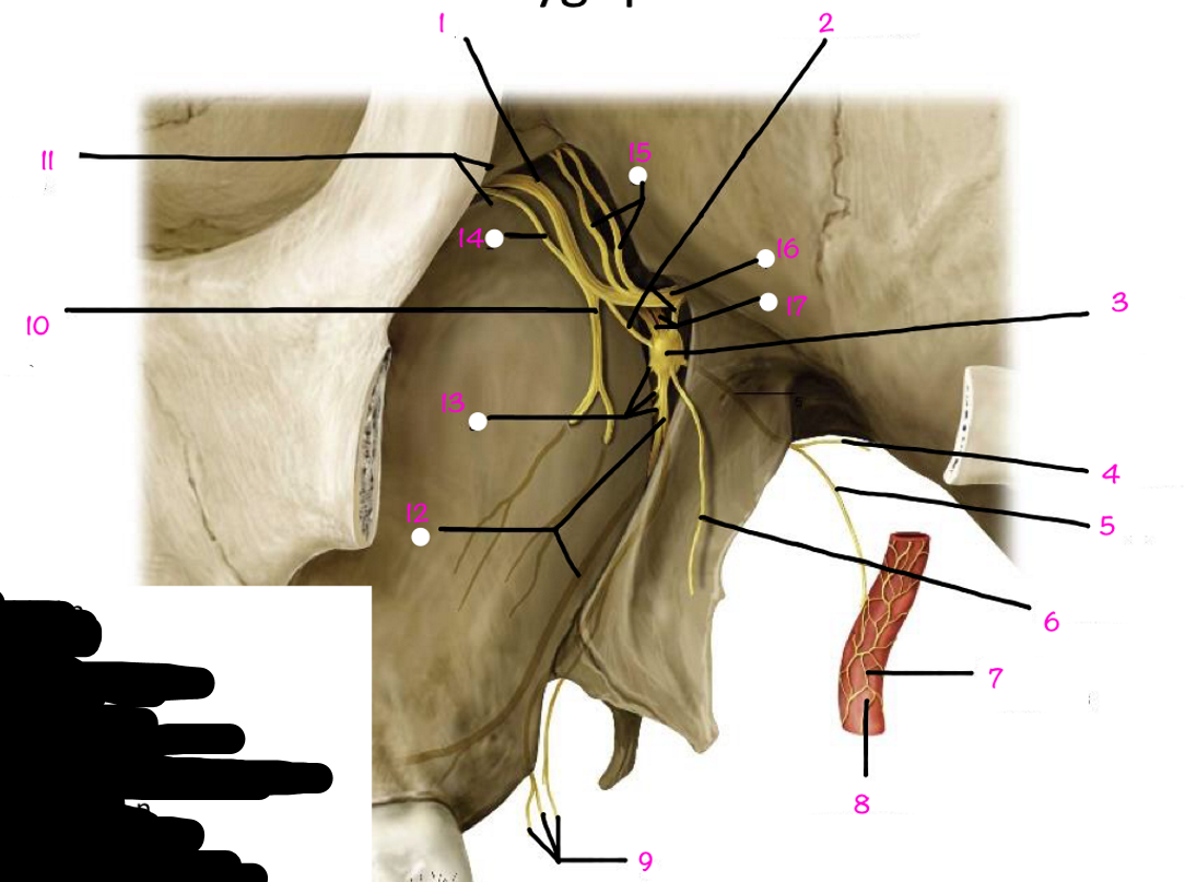 Medial and lateral superior and posterior inferior nasal branches from nasopalatine n. (V2)