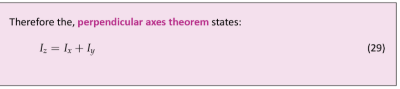 Perpendicular axes theorem (for a lamina in the x-y plane)