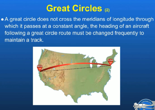 A great circle is the shortest distance between two points, but what is the disadvantage of a great circle?