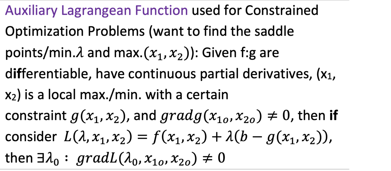 Auxiliary Langrangean Function