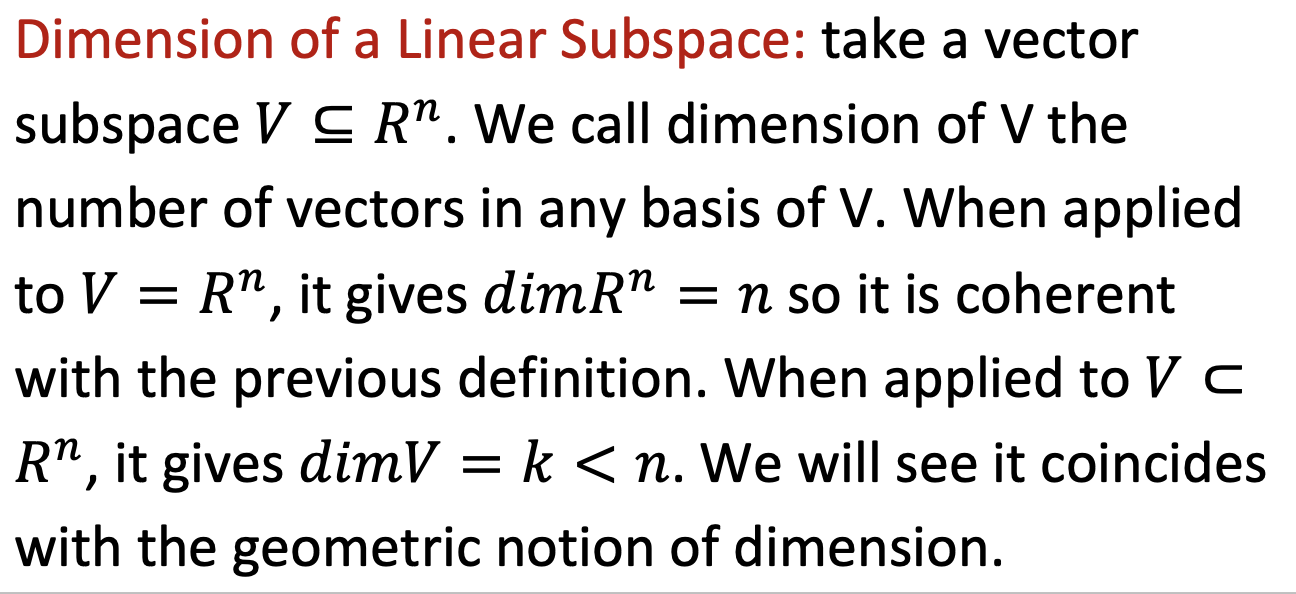 Dimensions of a Linear Subspace
