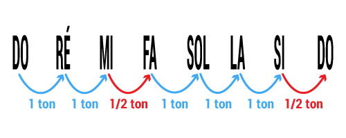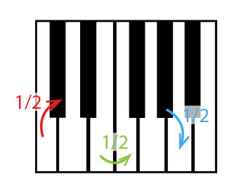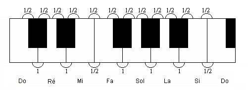 1) Il y a 1/2 ton entre Mi-Fa et Si-Do, là où sur le clavier il n’y a pas de touches noires