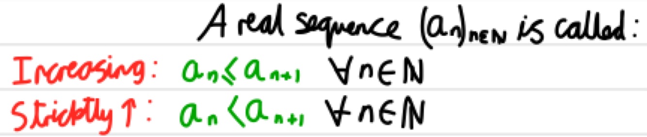 A sequence is increasing or strictly increasing