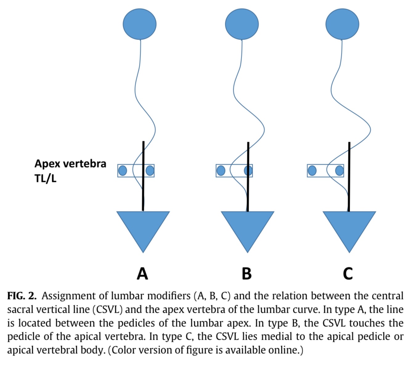 Pega a curva lombar e vê onde está a vértebra apical (mais longe do centro)