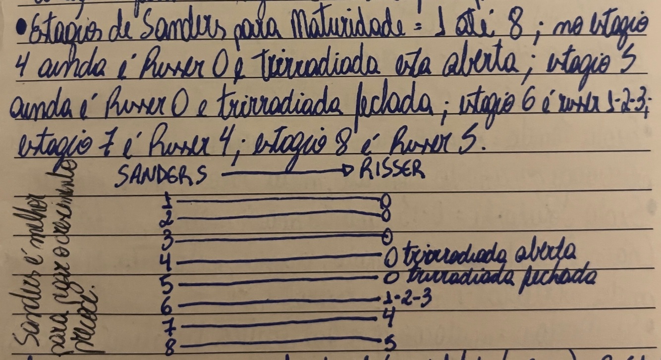 Relação Estágios de Sanders e Risser para maturidade