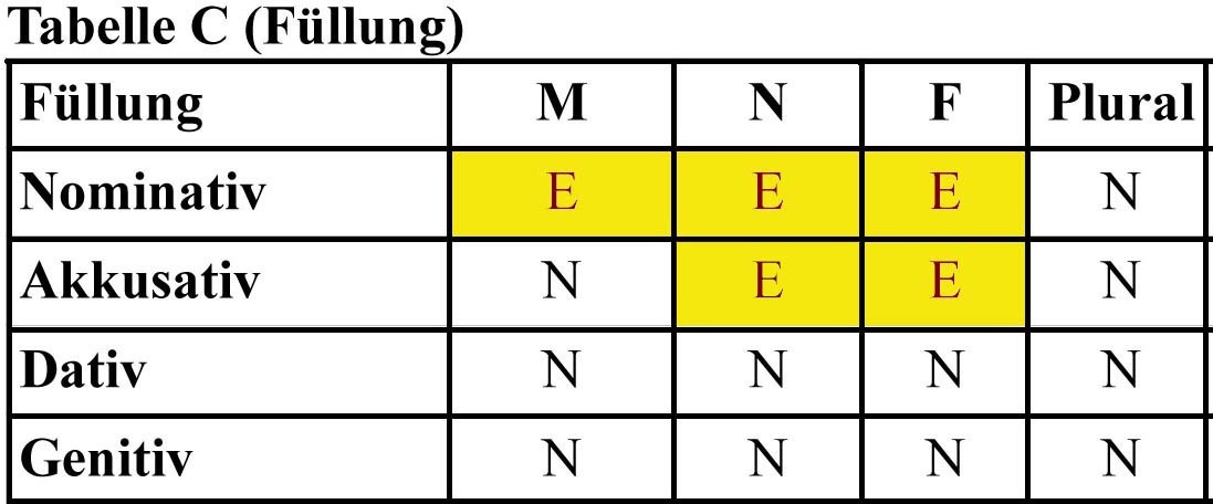 Deklinationstabellen Flashcards
