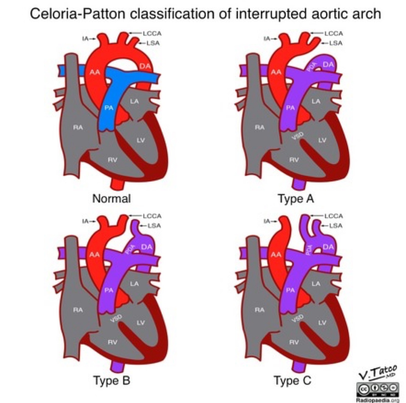 Cardiac defects of 22q11.2 deletion (DiGeorge) (from the most common) (4)