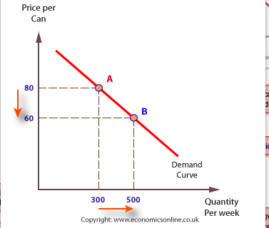Illustrate the effect of the quantity demanded increasing (on a demand curve)