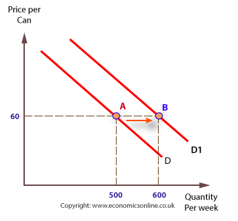 e.g. If a good becomes really popular, the demand for that good will increase