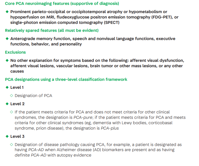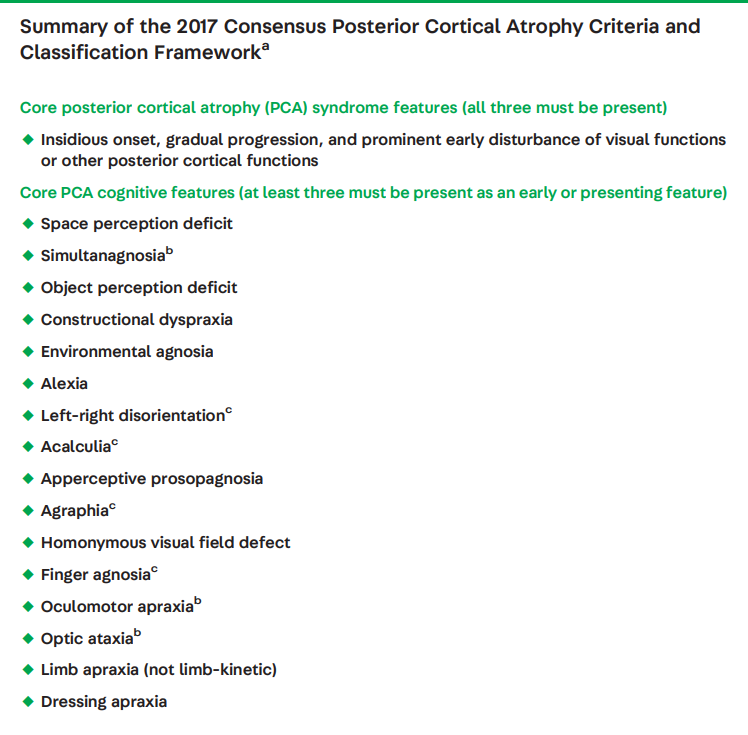Criterios diagnosticos da Posterior Cortical Atrophy (PCA) na DA: