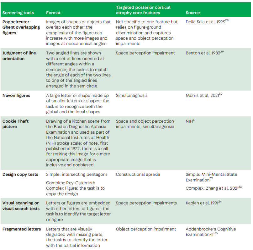 Screening tools para Posterior Cortical Atrophy (PCA):
