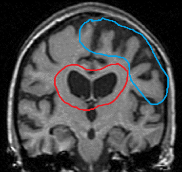 What are the abnormalities on the following MRI image? What disease does the patient most likely have?