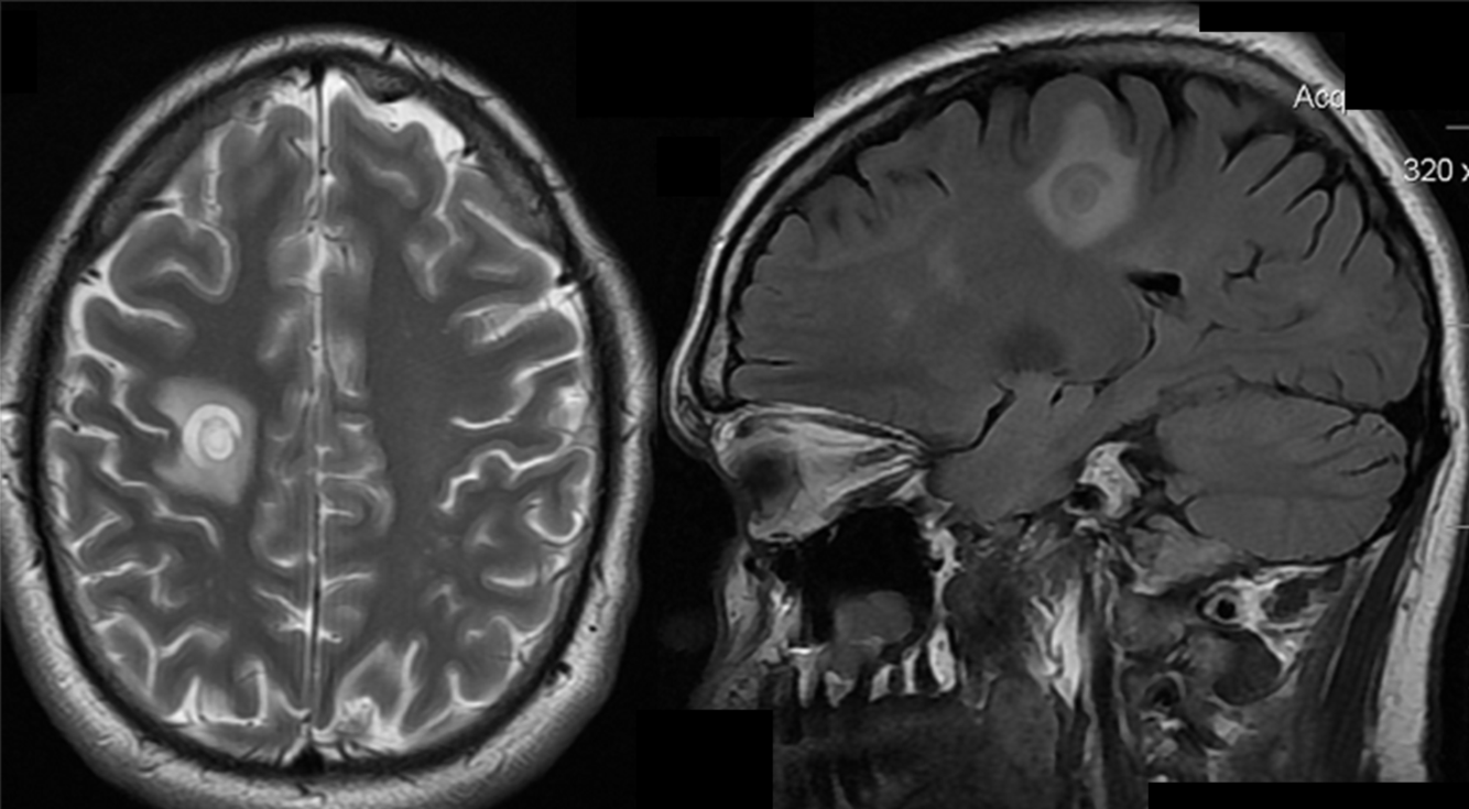 Multiple sclerosis - incomplete ring-enhancing lesions
