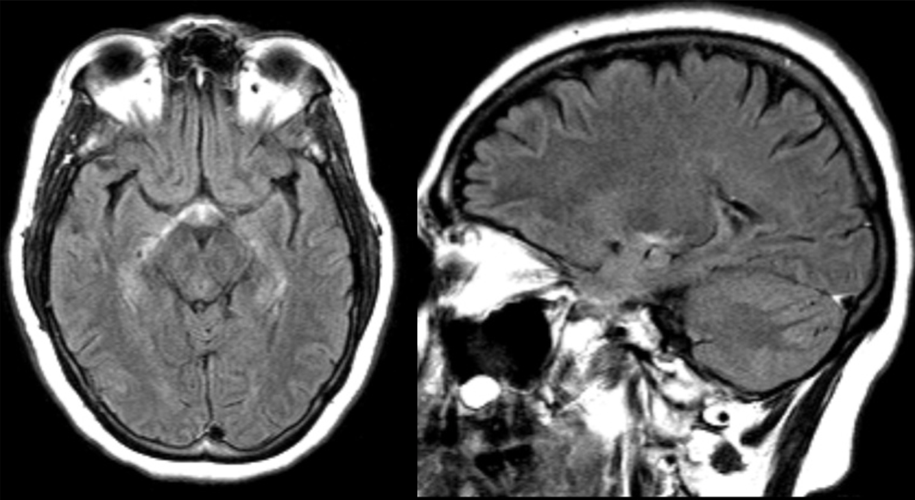A 34 year-old patient presented with double vision and left arm weakness.