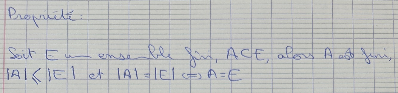 Soit E un ensemble fini, A ⊂ E, que peut-on dire de A ?