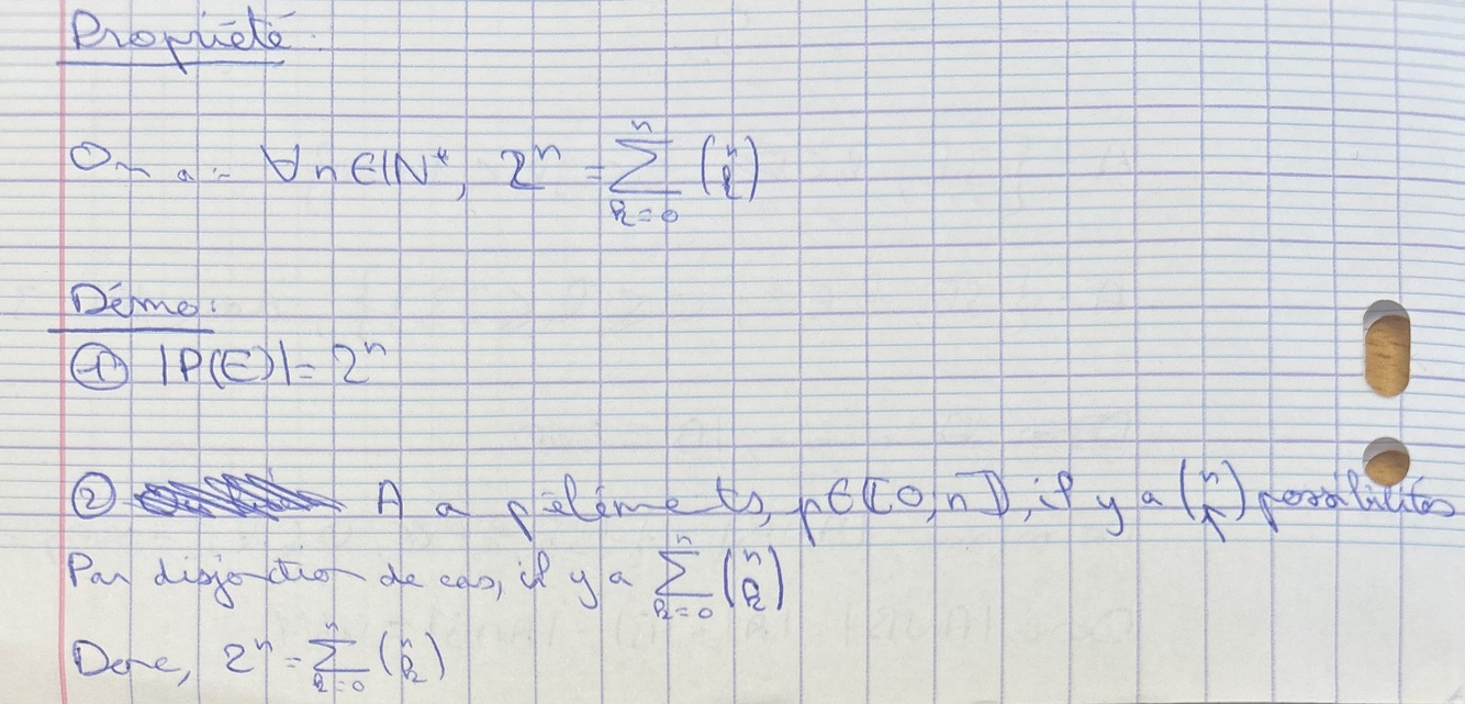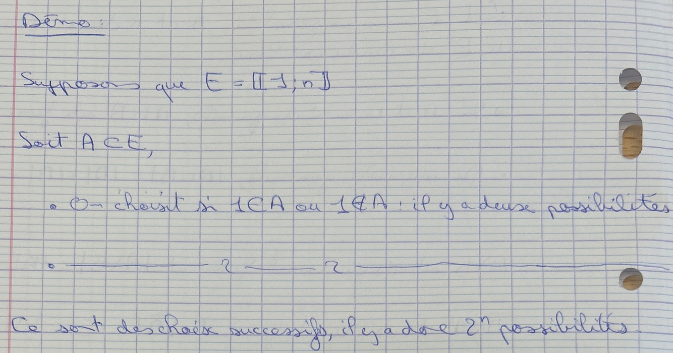 Soit E un ensemble fini de cardinal n, P(E) l’ensemble des parties de E, donner |P(E)|