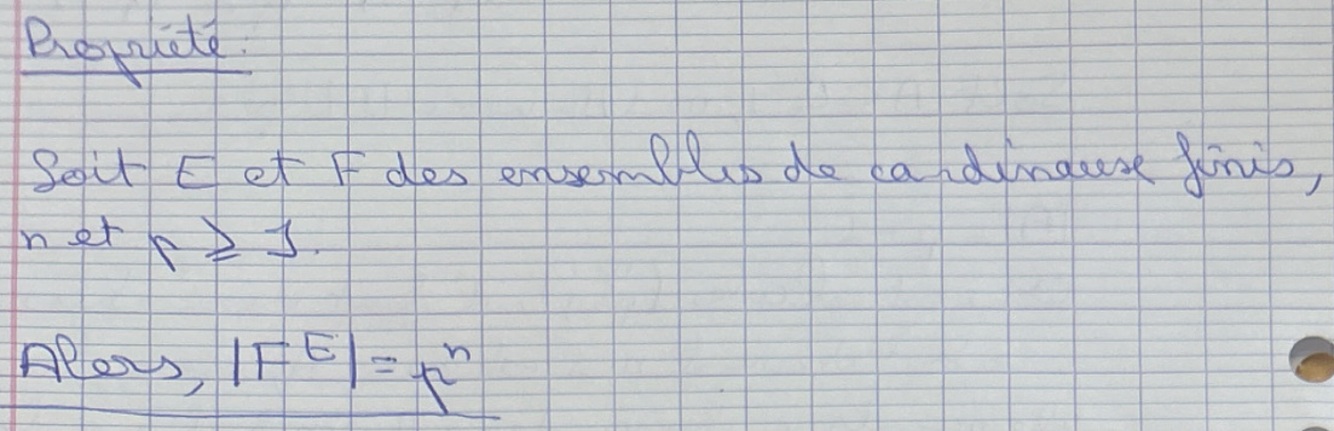 Soient E et F des ensembles de cardinaux finis n et p (supérieurs à 1), donner le cardinal de F^E