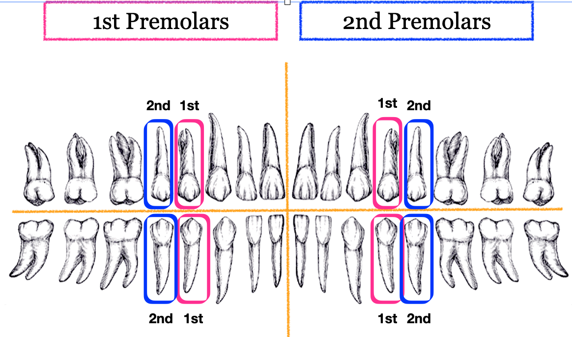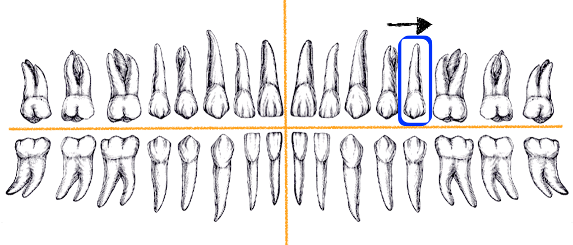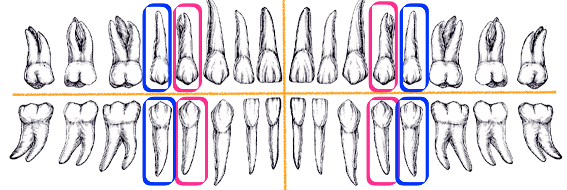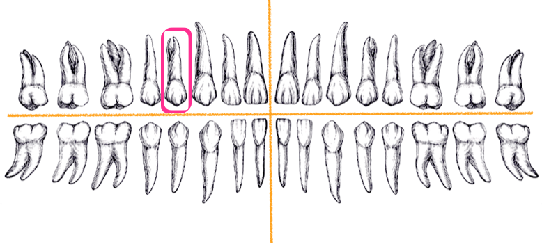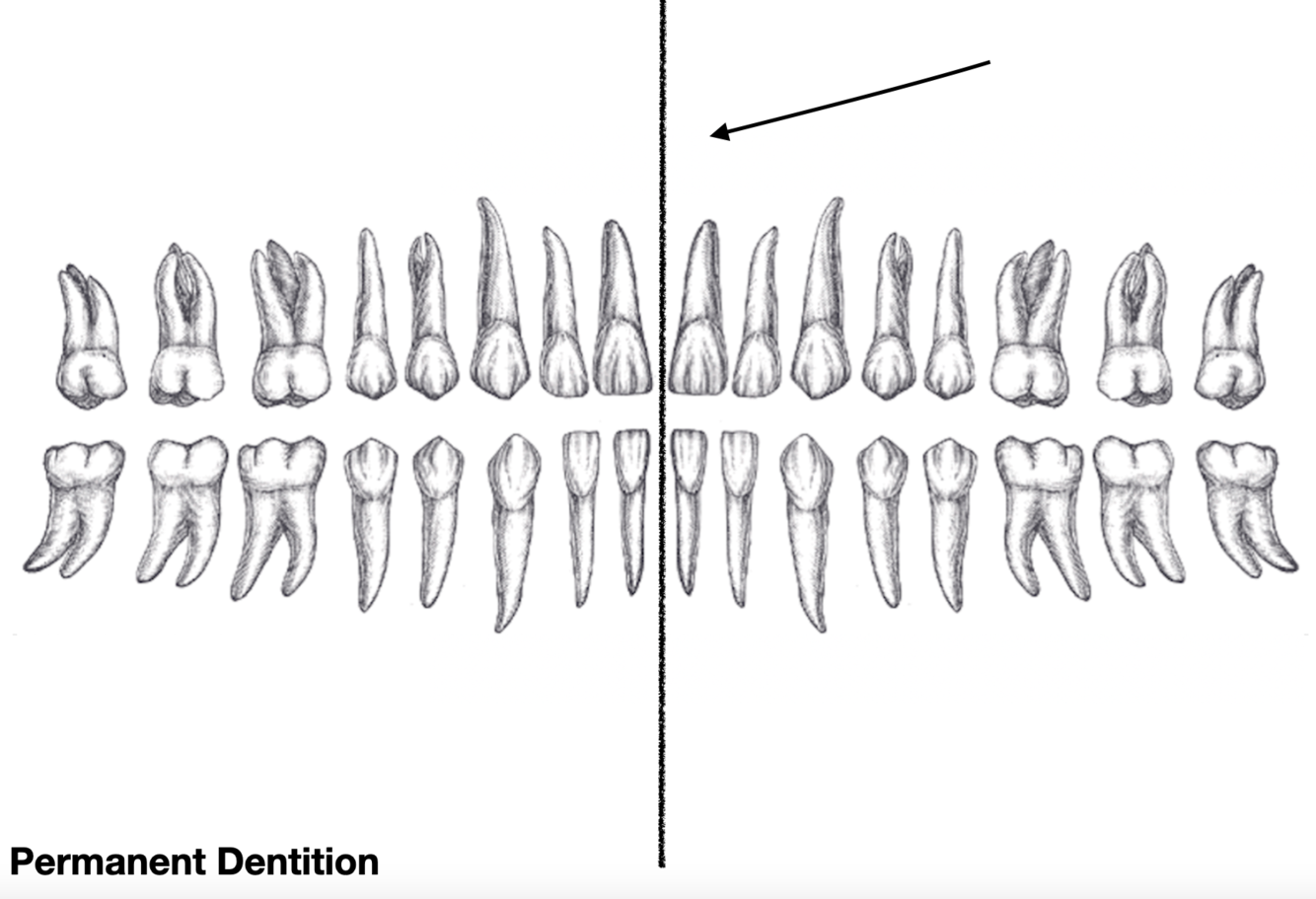 There are two central incisors in the upper arch and two central incisors in the lower arch.