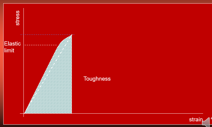 Toughness is the amount of energy absorbed by a material until it breaks. Neither resilience or toughness are included in the standard requirements, however, they are important properties.