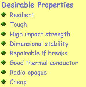 in addition to the mandated properties, list the desirable properties of a denture base material