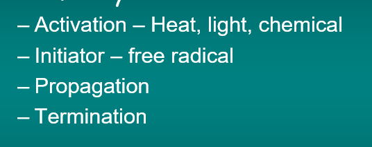 list the 4 stages of polymerisation of PMMA