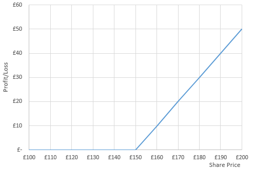 A call option is the right (but not the obligation) to buy a share in the future, at a price you agree now (the strike price).