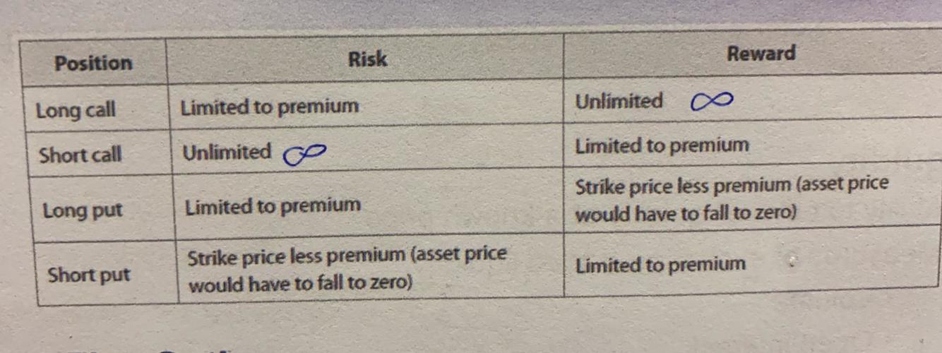 Examples: got call option to buy share at 100p, premium was 10p, share is now priced at 120p. –> you exercise and make profit of 120-100-10 = 10. roi = profit/premium = 10/10=100%roi!