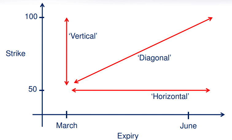what is a vertical, diagonal, and horizontal spread?