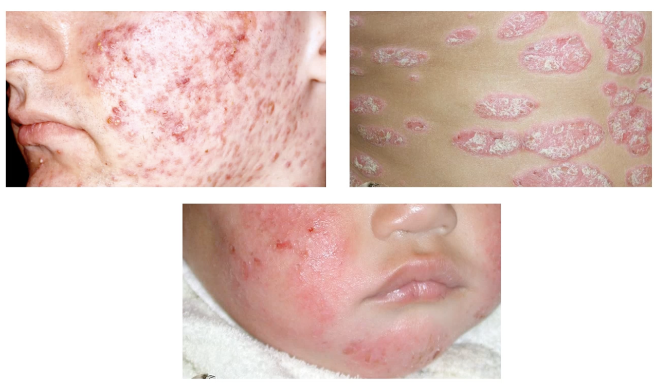 Acne, psoriasis and eczema (going clockwise)