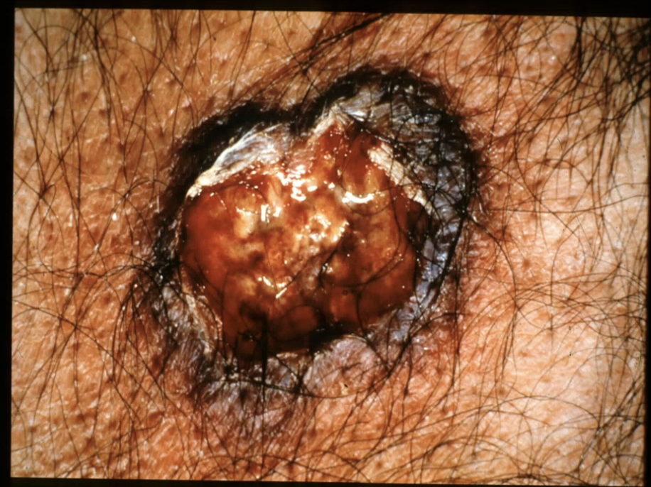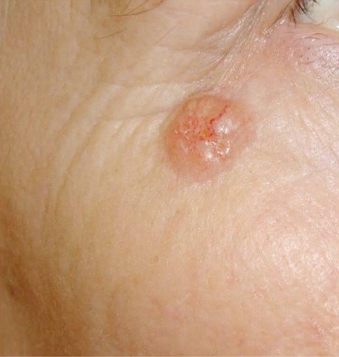BASAL CELL CARCINOMA = not life-threatening as does not metastasise but can cause problems especially if near eye as local damage