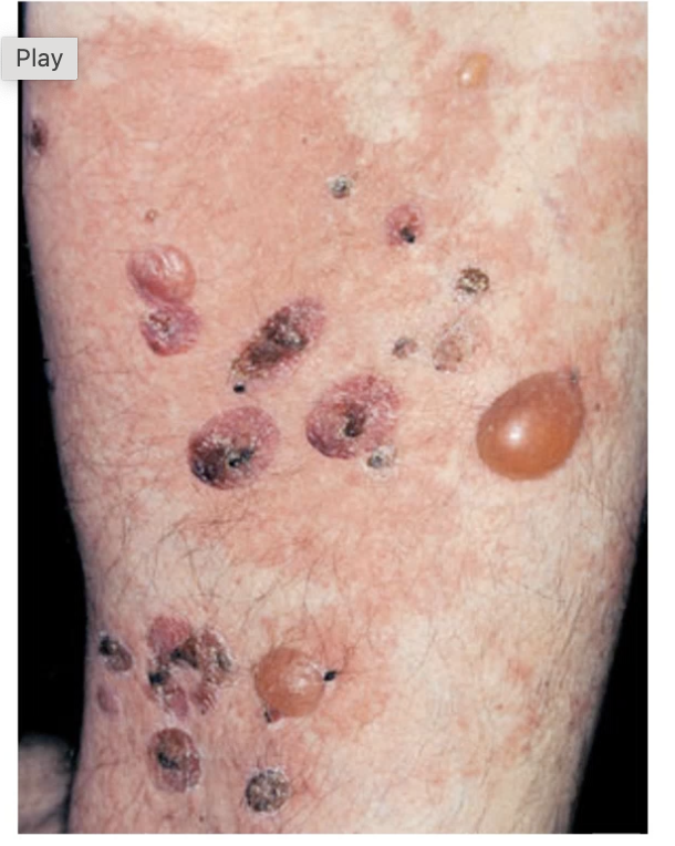 MUST look for underlying malignancy as a paraneoplastic feature of malignancy