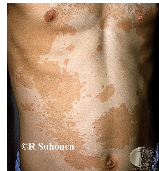 pityriasis vesicolor or vitiligo (ask what is your normal skin)