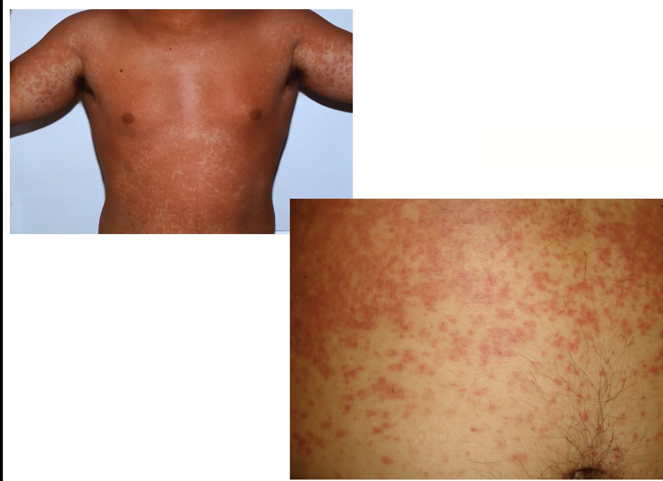 chest infection, given abx, rash developed, in trunks and upper arms, maculapapular appearance