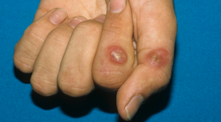 -self limiting infection from farm animals-causes a firm fleshy nodule and is common in farmers