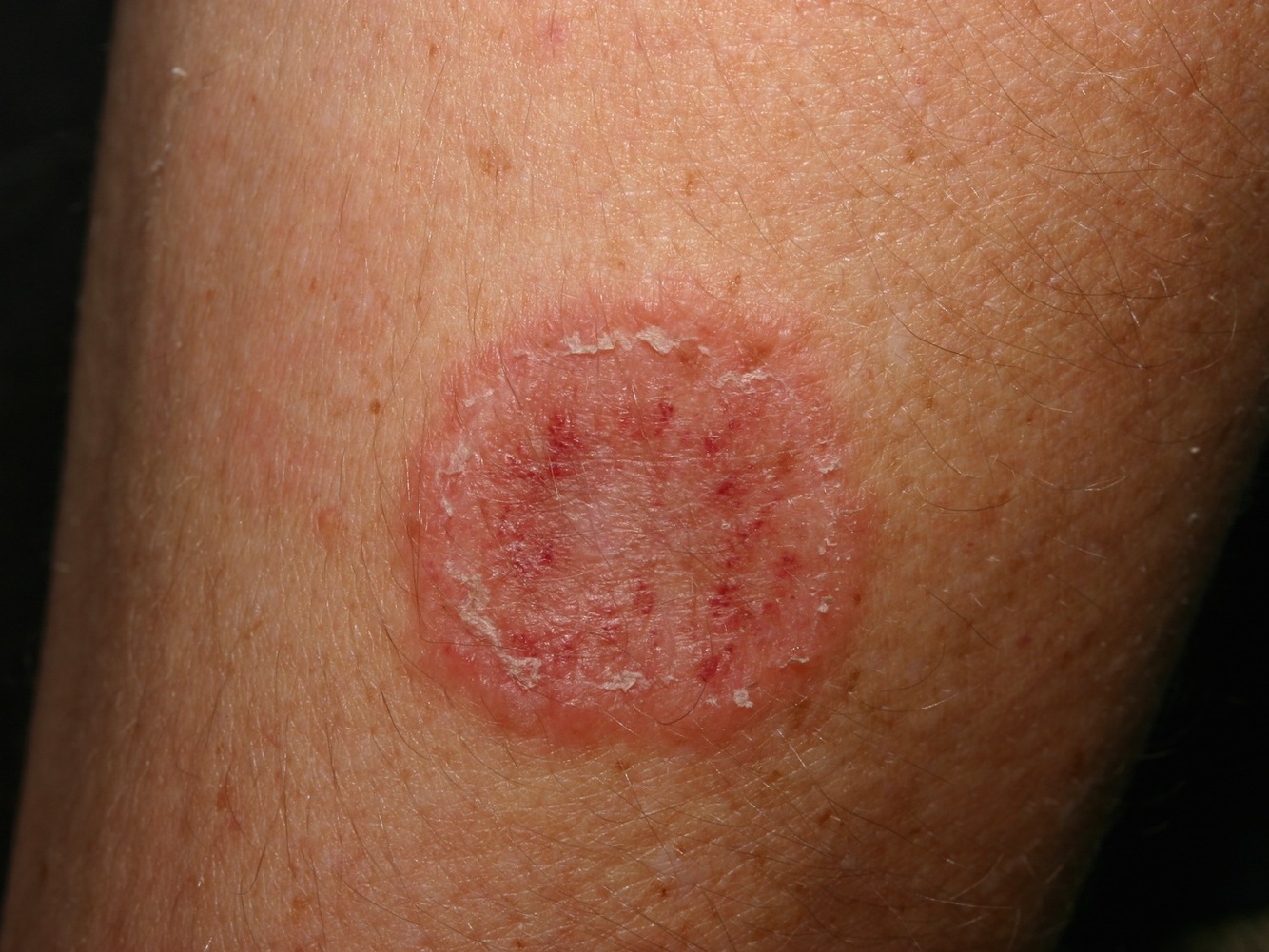 Rash description: scaly, erythematous, pruritic rash with a raised border and central clearing ; tx?-2