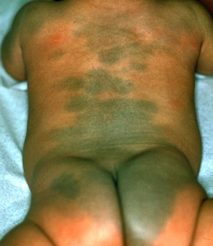 Mongolian Spot dermal melanocytosis (fade during childhood) ; Pretty much every race except white lol