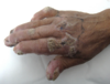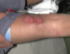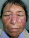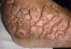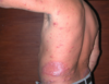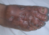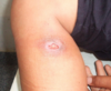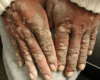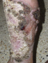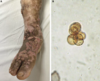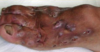 violet warty / ulcerated lesions which are itchy. Chestnut brown fungi or branching hyphae on smears =? cause? rx?