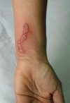 Hookworm - cutaneous lava migrans - very slow moving 2-3mm per day.