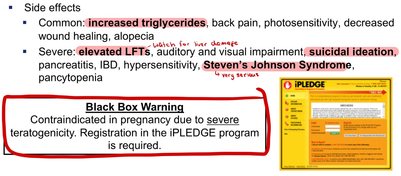 Which oral Retinoid is teratogenic and you have to wait 3 years to get pregnant after taking?