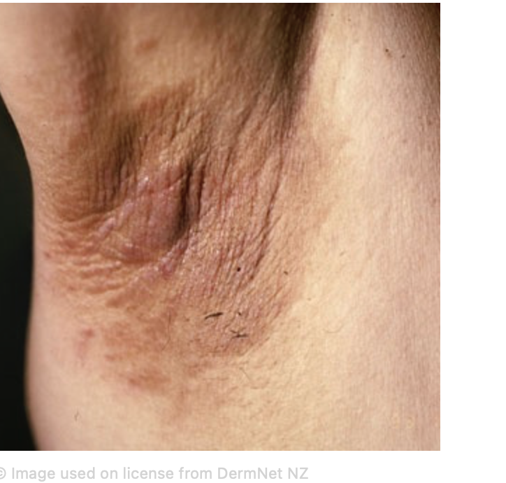Describes symmetrical, brown, velvety plaques that are often found on the neck, axilla and groin.