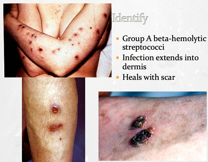 - Caused by group A Streptococcus and s. aureus in adults