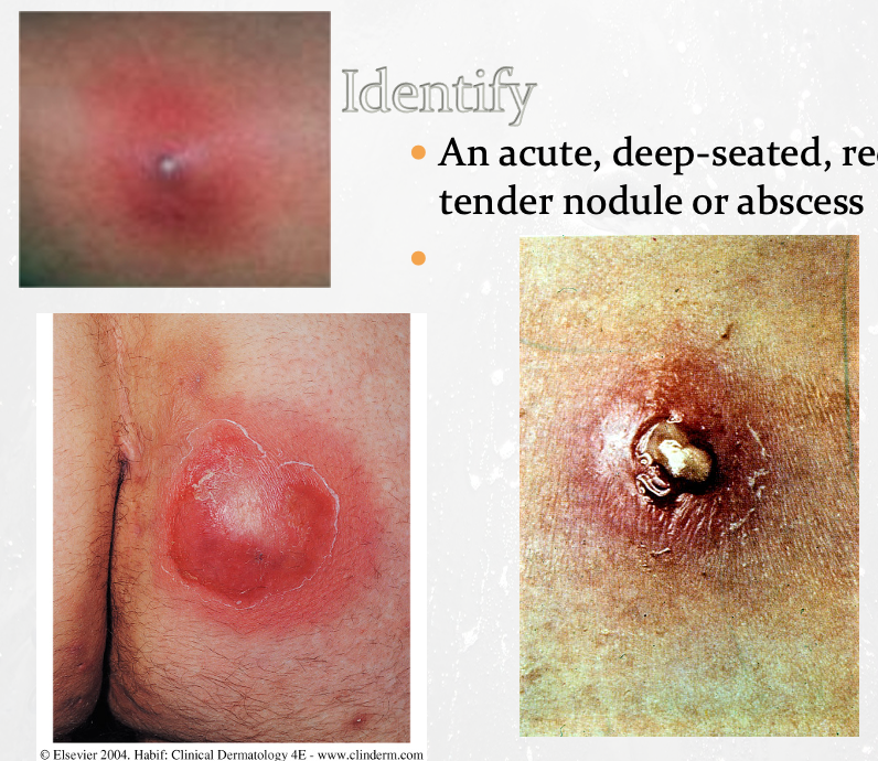 An acute, deep-seated, red, hot tender nodule or abscess