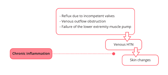 proteolytic enzymes produced by macrophages, other forms of inflamation and deposition of iron storage complexes (hemosiderin)
